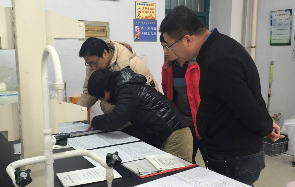 2017年12月14日下午,由学校专家组成的现场考察工作组到探花av 进行2017年教学实验仪器使用效益专项检查。检查组一行抽检查看了环境科学与工程实验教学中心、水利工程与地下水实验教学中心的31台仪器设备以及2个计算机房。此次检查内容为机时利用、学生操作、维修维护状况、管理水平、承担课内实验项目、承担大创项目及开放实验项目等情况,专家组查看了《探花av 实验室教学运行记录本》、《探花av 教学仪器使用记录本》、实验课表、学生实验报告、实践教学大纲、实验项目卡、开放性创新实验结题报告、仪器维护记录等相关资料。