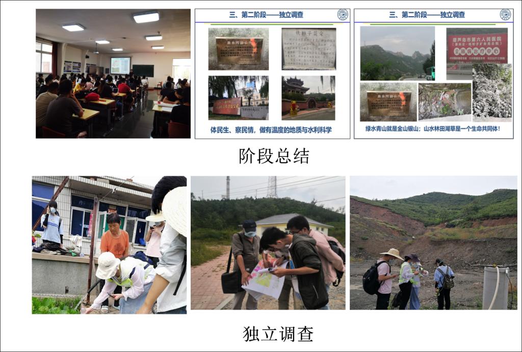 9月2至5日,在各带班教师引导下,学生们相继完成了白杨木沟泉水出露成因、水东沟自流井形成条件、榆树沟地表水与地下水转化关系、杨家杖子矿山开采环境影响等4条路线的实践教学活动。