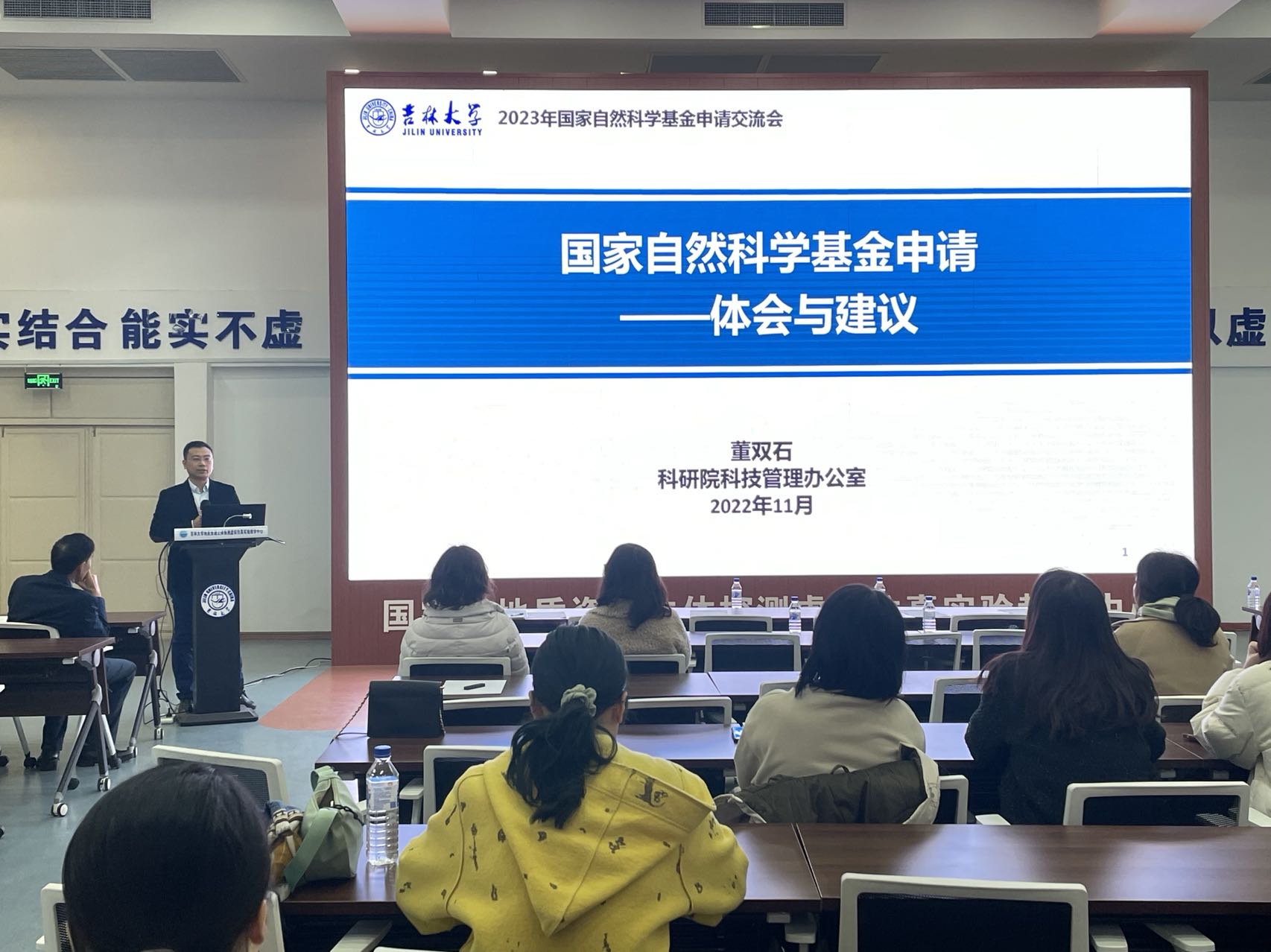 副院长董军主持,科研院科技管理办公室董双石副主任、卞建民副院长、花修艺副院长、学院教师、博士后、博士研究生等参加了此次交流会。董军副院长首先对全院教师在2023年申报自然基金进行了动员,希望通过此次讲座,能通过学习其他教师的申请经验使拟申报人员更深入地了解基金评审的规则及基金撰写的注意事项,提高申报成功率。