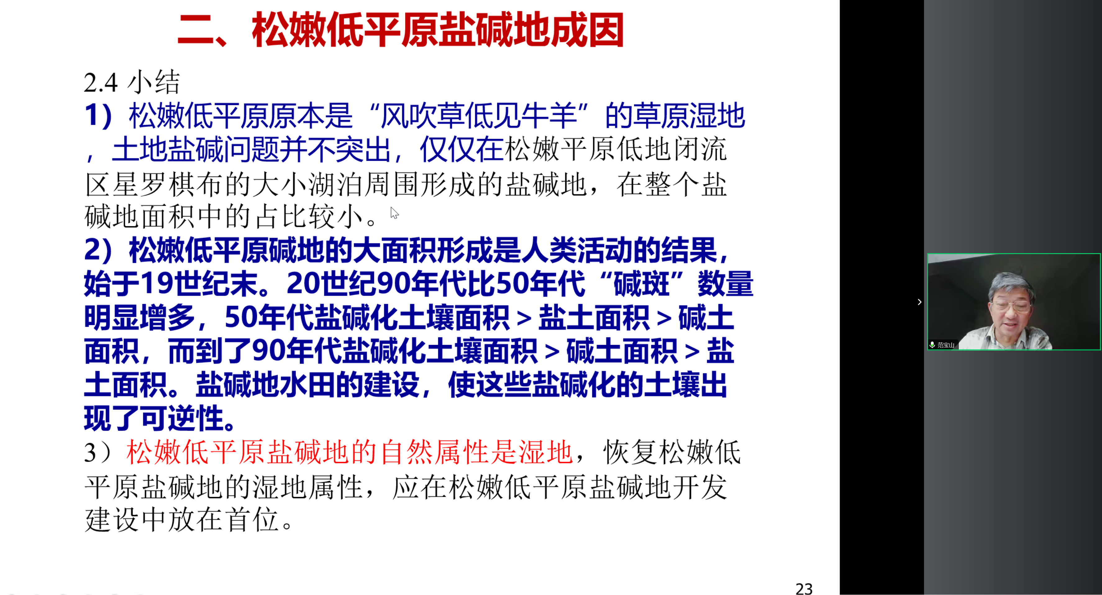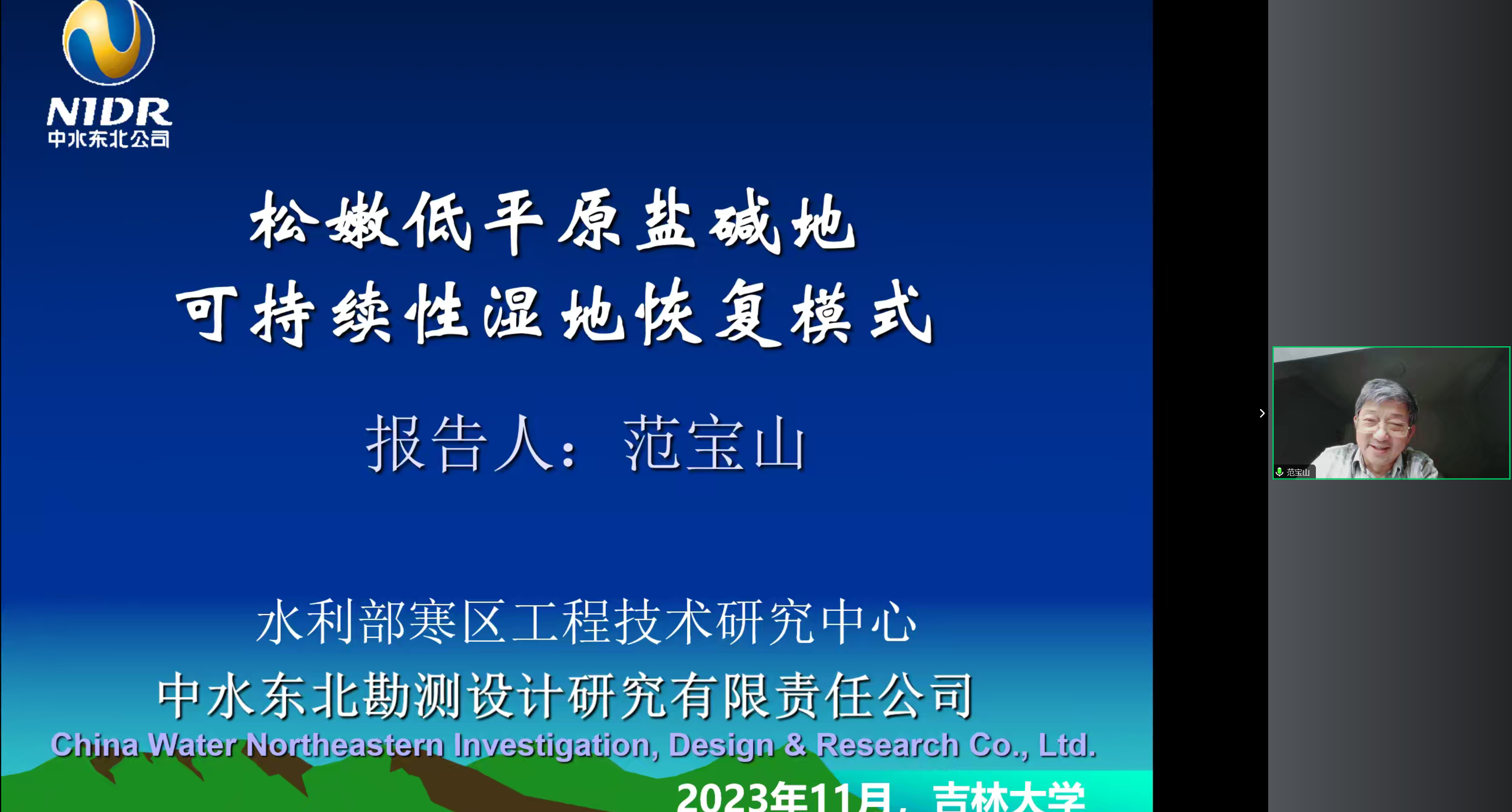 2023年11月23日,中水东北勘测设计研究有限责任公司科学研究院、水利部寒区工程技术研究中心原总工范宝山正高级工程师应邀,就“松嫩低平原盐碱地可持续性湿地恢复模式”这一主题进行了精彩的学术报告。报告会由探花av
