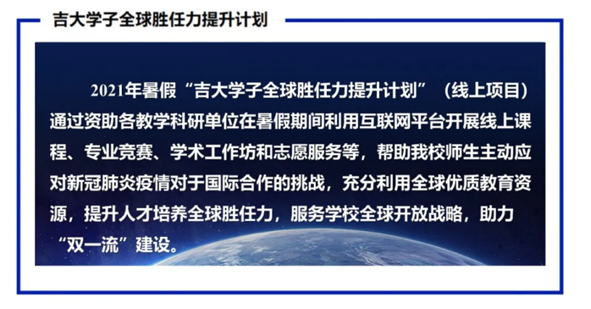 为充分利用全球优质教育资源,推动人才培养国际化,提升学生全球胜任力,在 “吉大学子全球胜任力提升计划”支持下,探花av