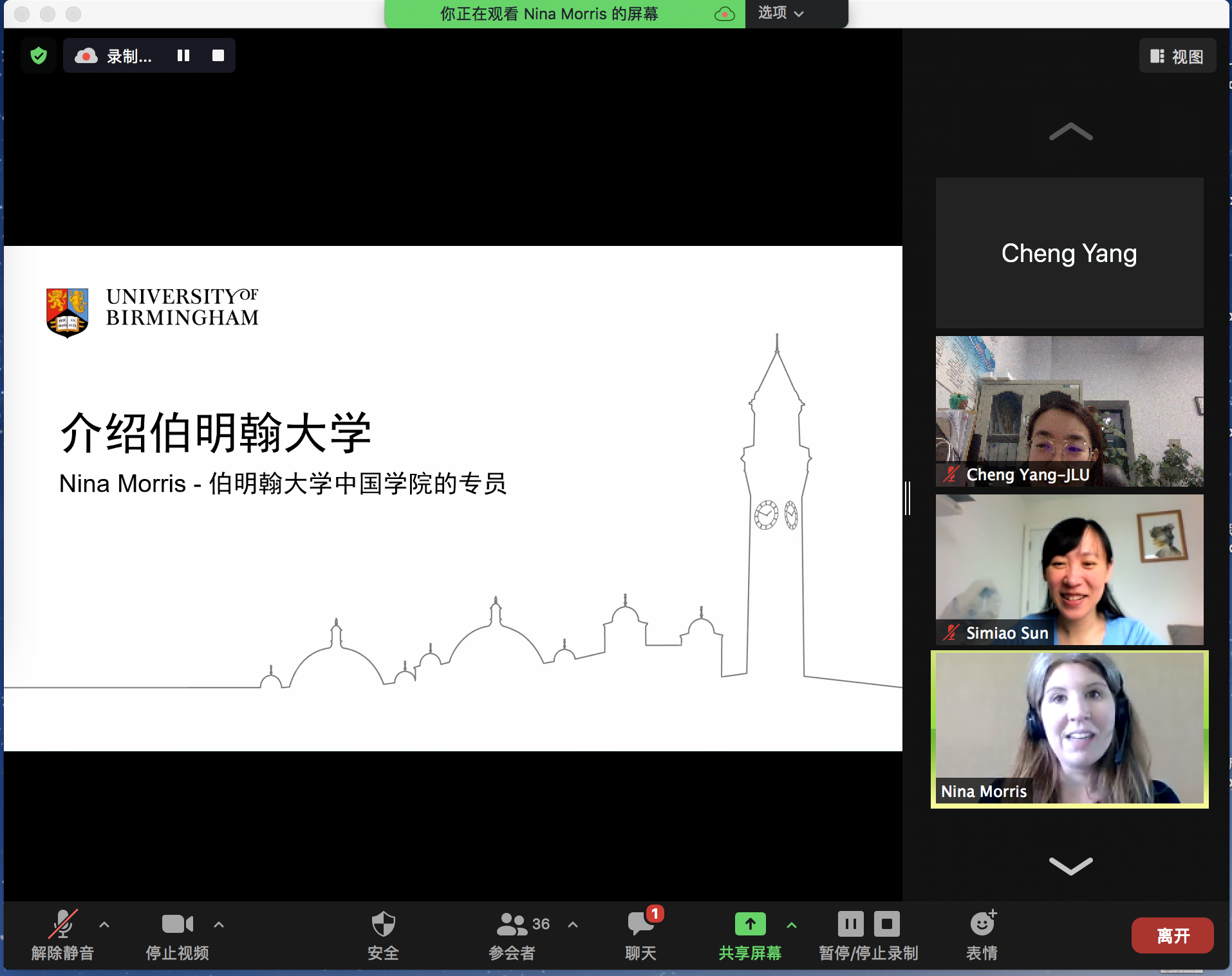 主办了英国伯明翰大学“3+1+1”联合培养项目线上宣讲会,旨在对学院与伯明翰大学地理、地球与环境科学学院达成的“3+1+1”本硕联合培养项目进行宣传。伯明翰大学中国学院负责人妮娜·莫里斯女士、生命与环境科学学部硕士主管克里斯·布拉德利博士、地理、地球与环境科学学院水文地质专业负责人约翰•泰勒姆教授、学院国际事务副主任孙思淼博士参加了宣讲会并针对联合培养项目做了详细的介绍。学院外事副院长董军教授、地下水科学与工程系杨悦锁教授、和外事秘书杨珵老师参加了宣讲会,学院50余名本科生积极参与了本次线上宣讲会。