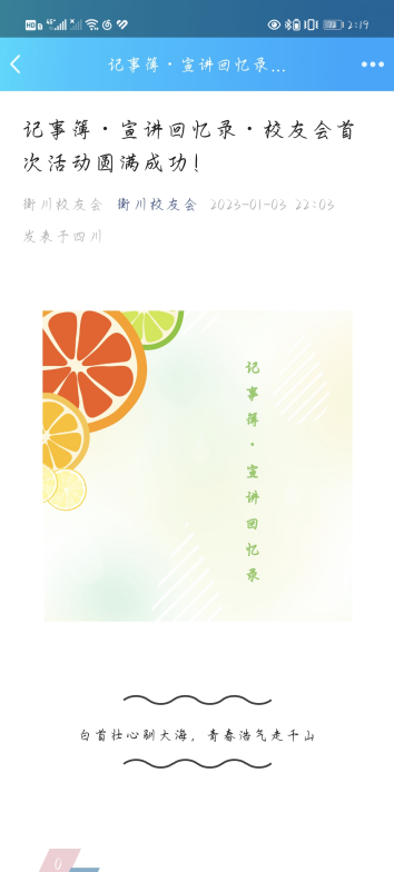 活动结束后,自贡衡川实验学校公众号发布活动圆满结束推文以及本次宣讲视频