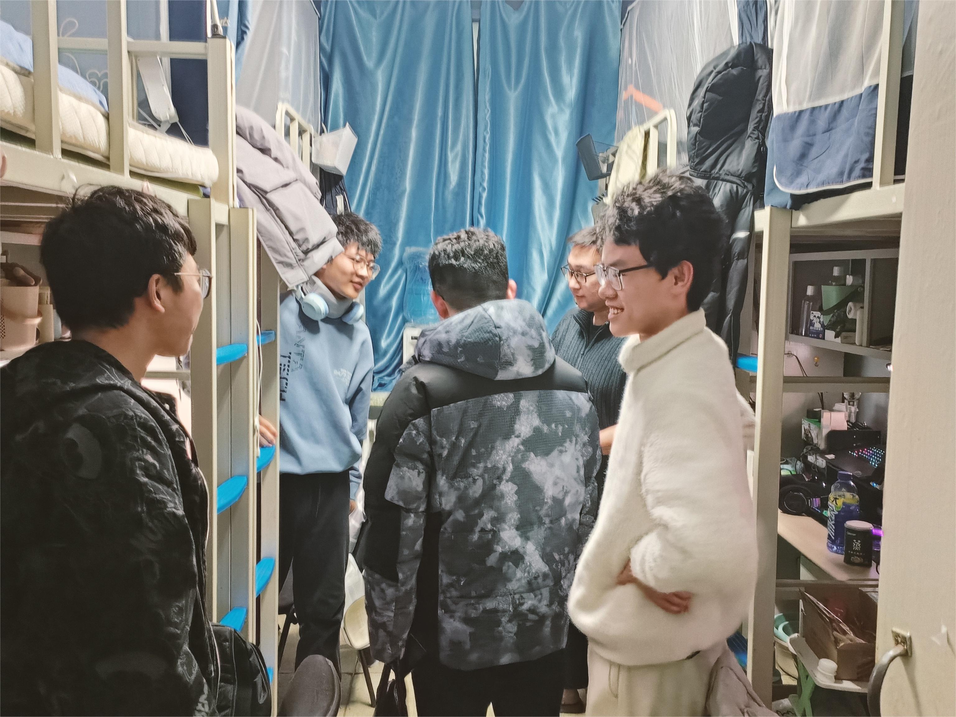 党委副书记吴哲带领学生工作办公室的全体辅导员深入寝室,对两个校区四个公寓楼的247间寝室进行走访,达到本科学生寝室全覆盖。