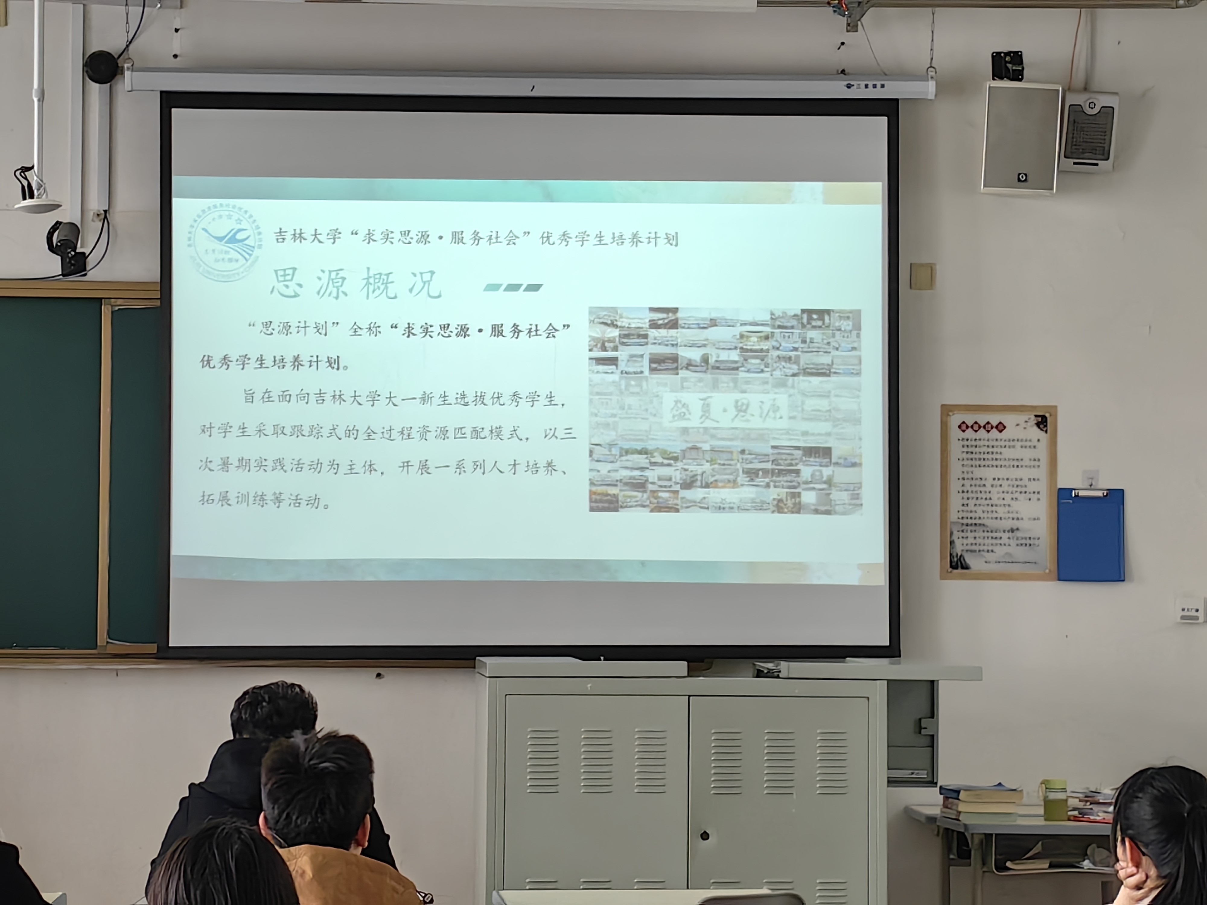 “求实思源·服务社会”优秀学生培养计划做出详尽的介绍,随后为同学们播放了思源十一期2023年暑期出行实践的视频,进一步激发了同学们的热情。