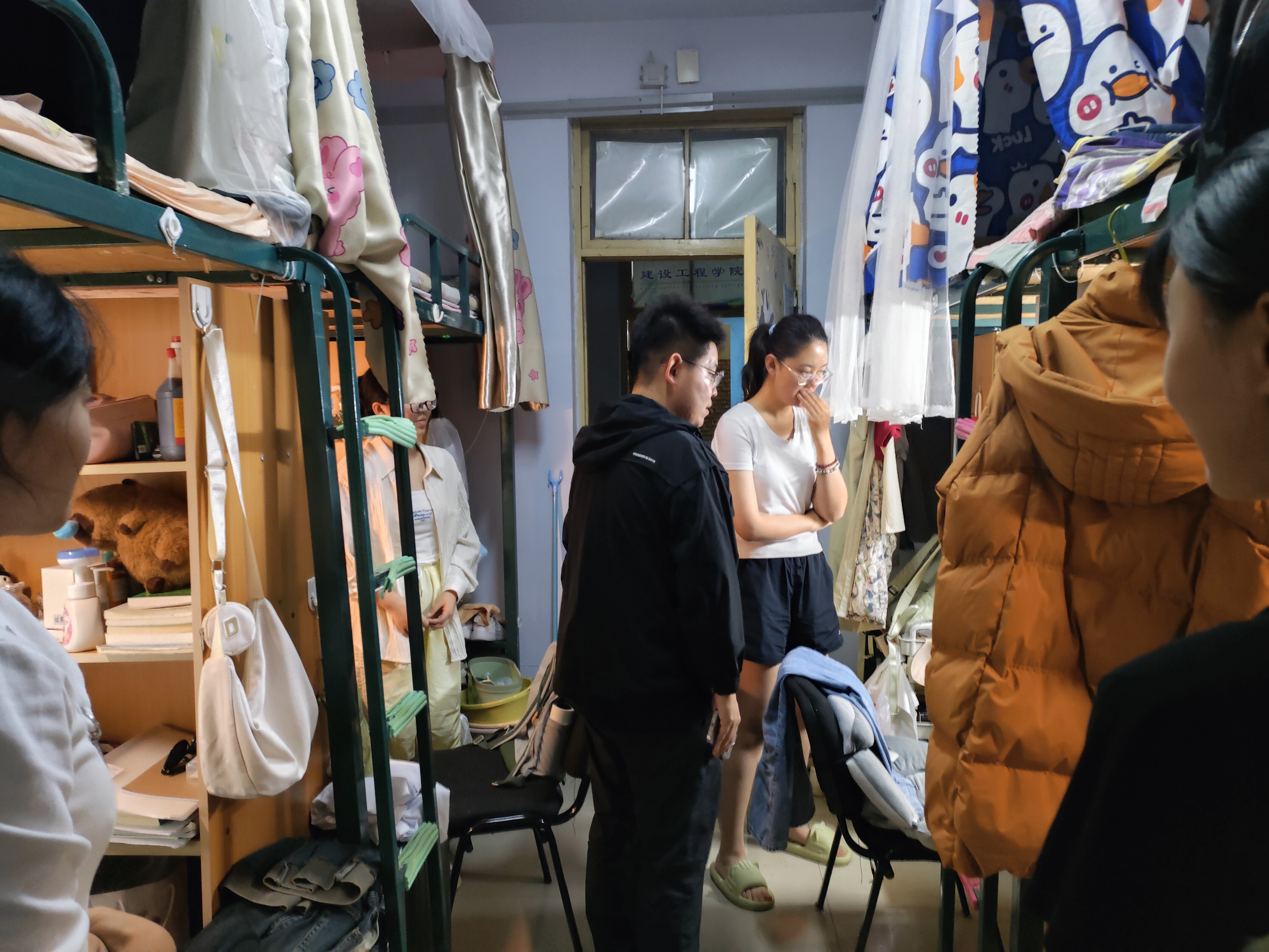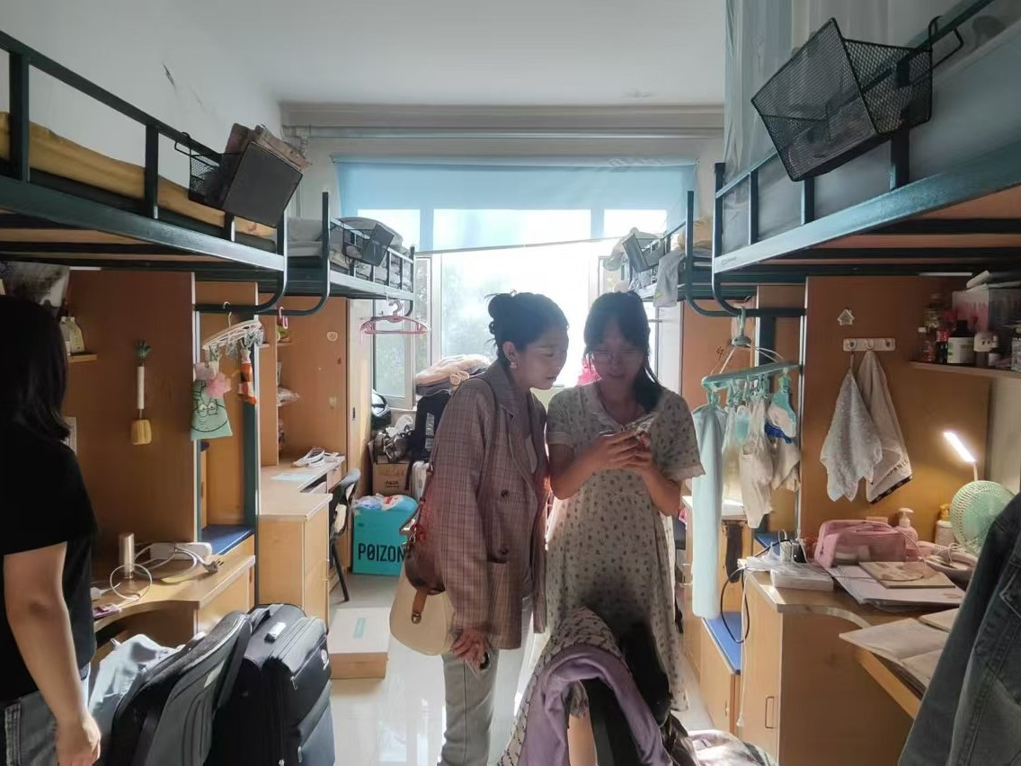 9月14日,2021级辅导员李薇老师进入朝阳五公寓、朝阳七公寓对寝室卫生进行检查,同时核对学生在校离校情况,提醒假期外出同学们注意安全保持联络。