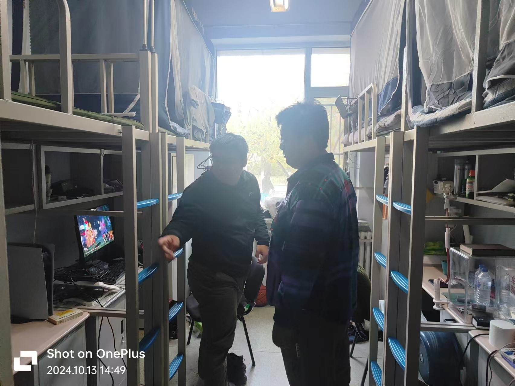 10月7日,学院副书记、2024级新生辅导员吴哲老师对前卫南区南苑一公寓进行检查,重点关注了寝室卫生和消防安全情况,对寝室卫生较差的同学进行拍照记录,并督促其及时整改。10月11日,吴老师走进《微积分B1》课堂,抽查2024级同学到课情况,未发现迟到现象。