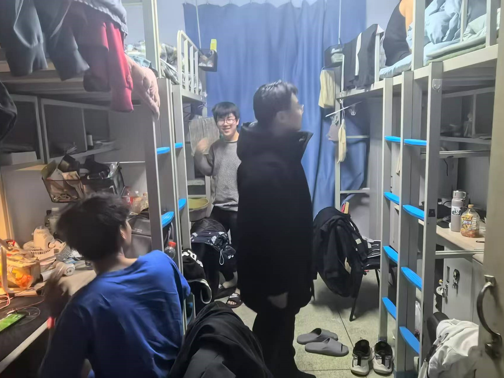 12月20日,2023级辅导员姜岳彤老师进入南苑二公寓寝室,提醒学生注意寝室卫生,及时进行期末复习,同时将个别寝室床铺损坏的情况进行报修。