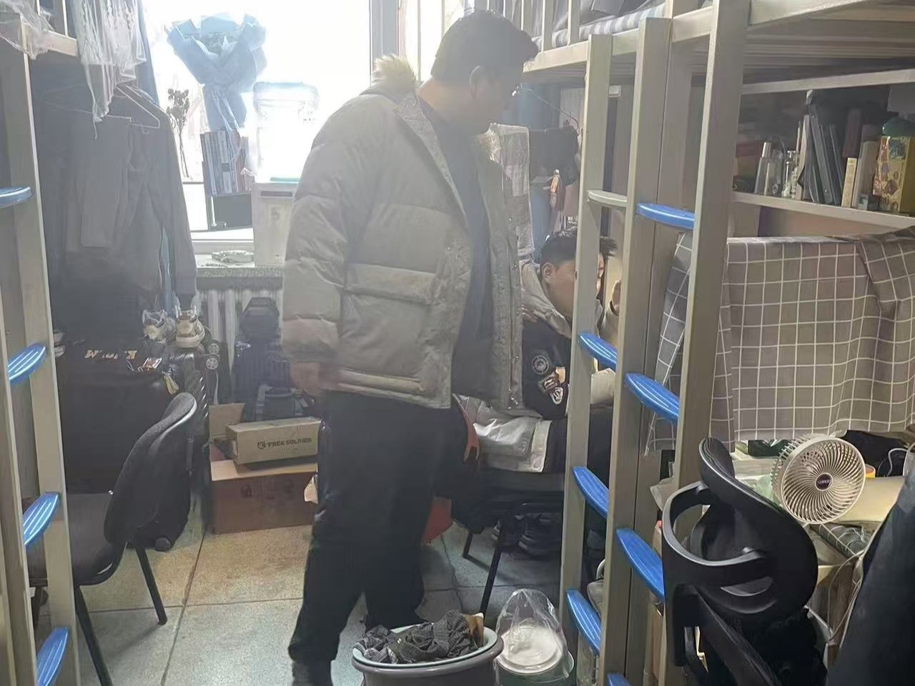 3月2日,2022级辅导员母茂松老师进入南苑一公寓寝室,检查宿舍卫生,了解学生近期思想动态和未来计划。