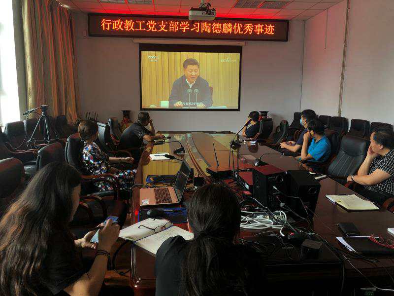 2020年8月26日下午,探花av 行政党支部党日主题活动组织支部党员集中学习全国优秀教师陶德麟。探花av 党委书记汪祥松同志首先肯定了在疫情防控期间各位行政服务人员所作出的努力与贡献,并对支部党员同志新学期的工作要求提出几点希望,希望支部党员同志在新学期起好模范带头作用,加强政治学习、民主监督,在服务师生的过程中注意意识形态的正确引导,遵守各项工作制度等。行政支部党支部书记温卓同志介绍了全国优秀教师陶德麟同志的简介,并组织集中学习观看陶德麟同志的生平纪录片。
