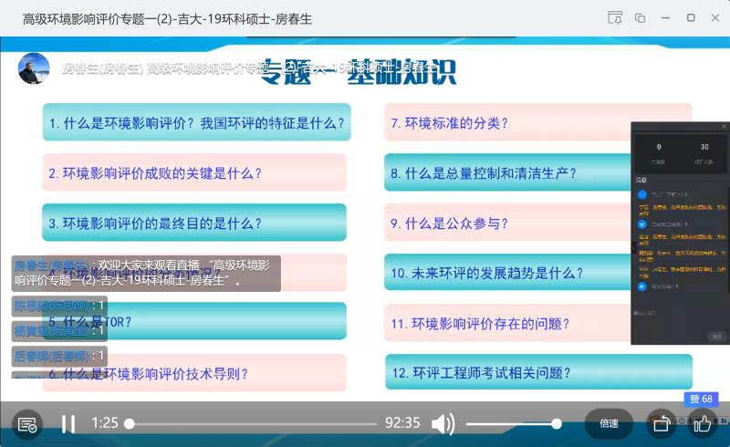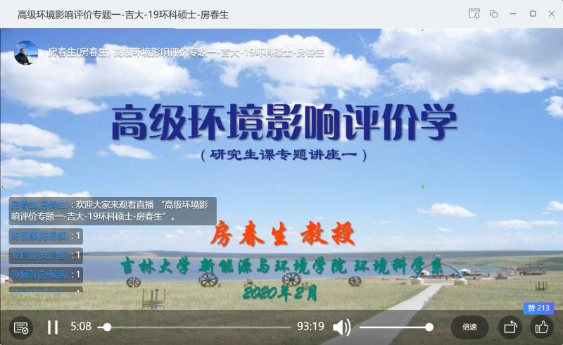 房春生教授开设的环境科学专业硕士研究生专业课《高级环境影响评价学》顺利进行了首次网络直播授课,成为探花av