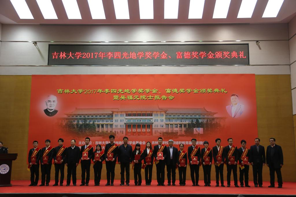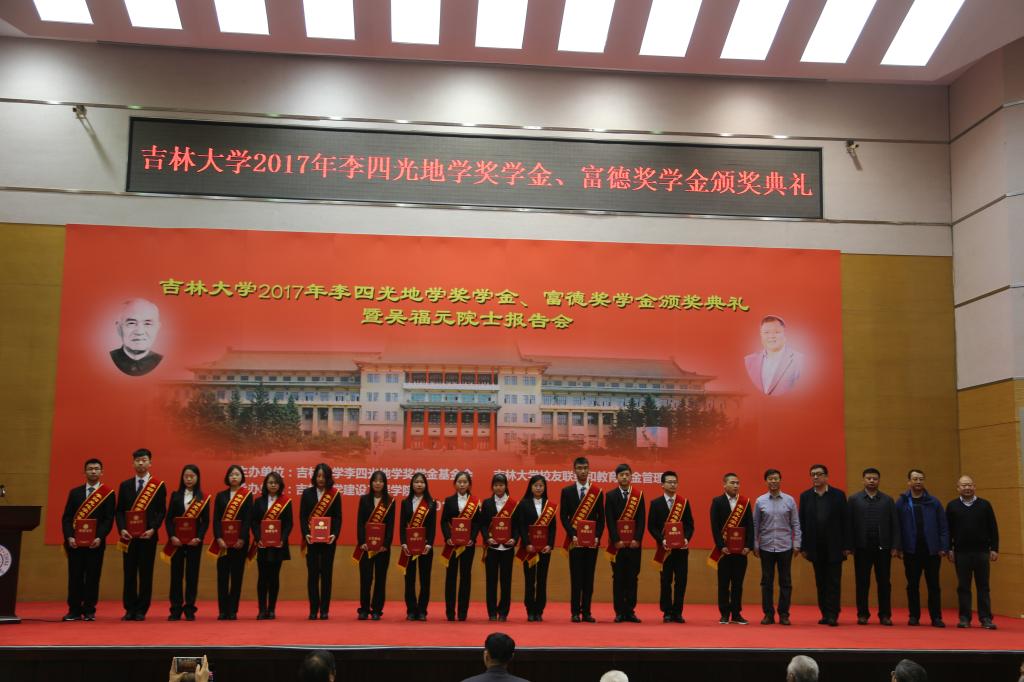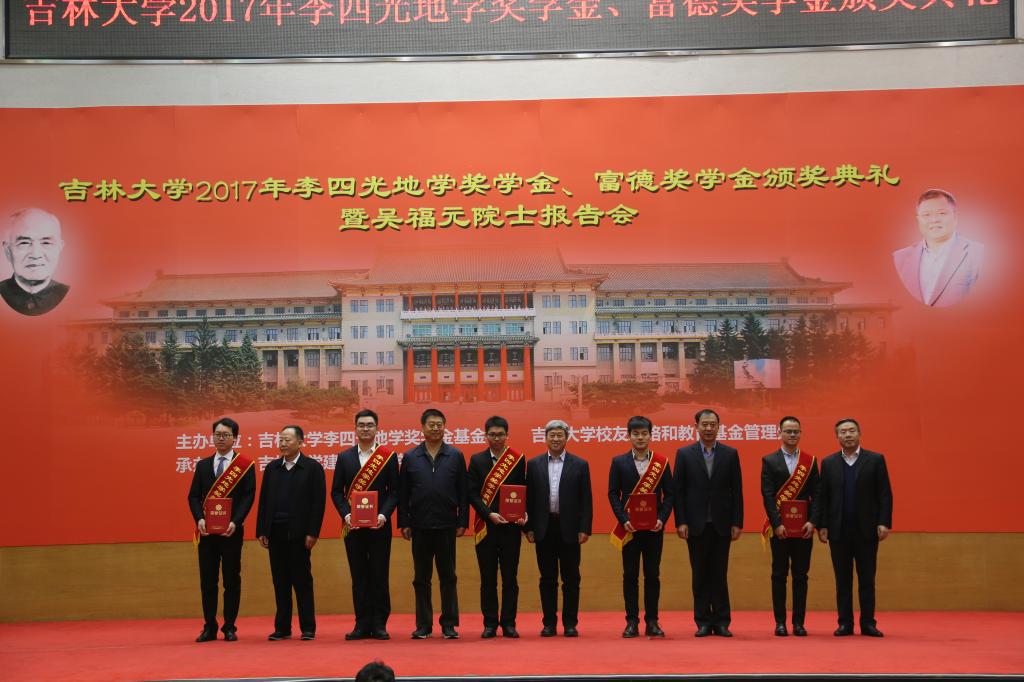 12月8日,探花av 2017年度李四光地学奖学金、富德奖学金颁奖典礼在中心校区东荣会议中心举行。探花av 研究生朱慧星,本科生韩子铭、邓贝奇、陈敬宜获得本年度李四光地学奖学金。本科生陈景川、王晨获得本年度富德奖学金。