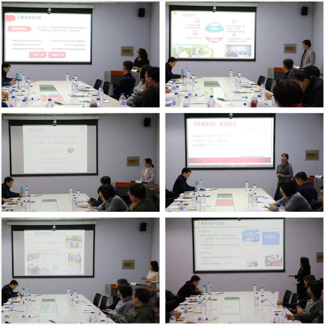 优秀“教学研究小组”和“学院青年教师提升计划(教学标兵)”考核由副院长卞建民教授主持。优秀“教学研究小组”经各系推荐共有五组参加评选,在听取各组对年度考核指标完成情况、取得的成果、发展思路、问题不足等几个方面的汇报和答辩后,经委员投票,确定一等奖两组:应用水文地质教学研究小组和环境化学教学研究小组;二等奖两组:水环境教学研究小组和环境生物技术教学研究小组;三等奖一组:环境规划与管理教学研究小组。