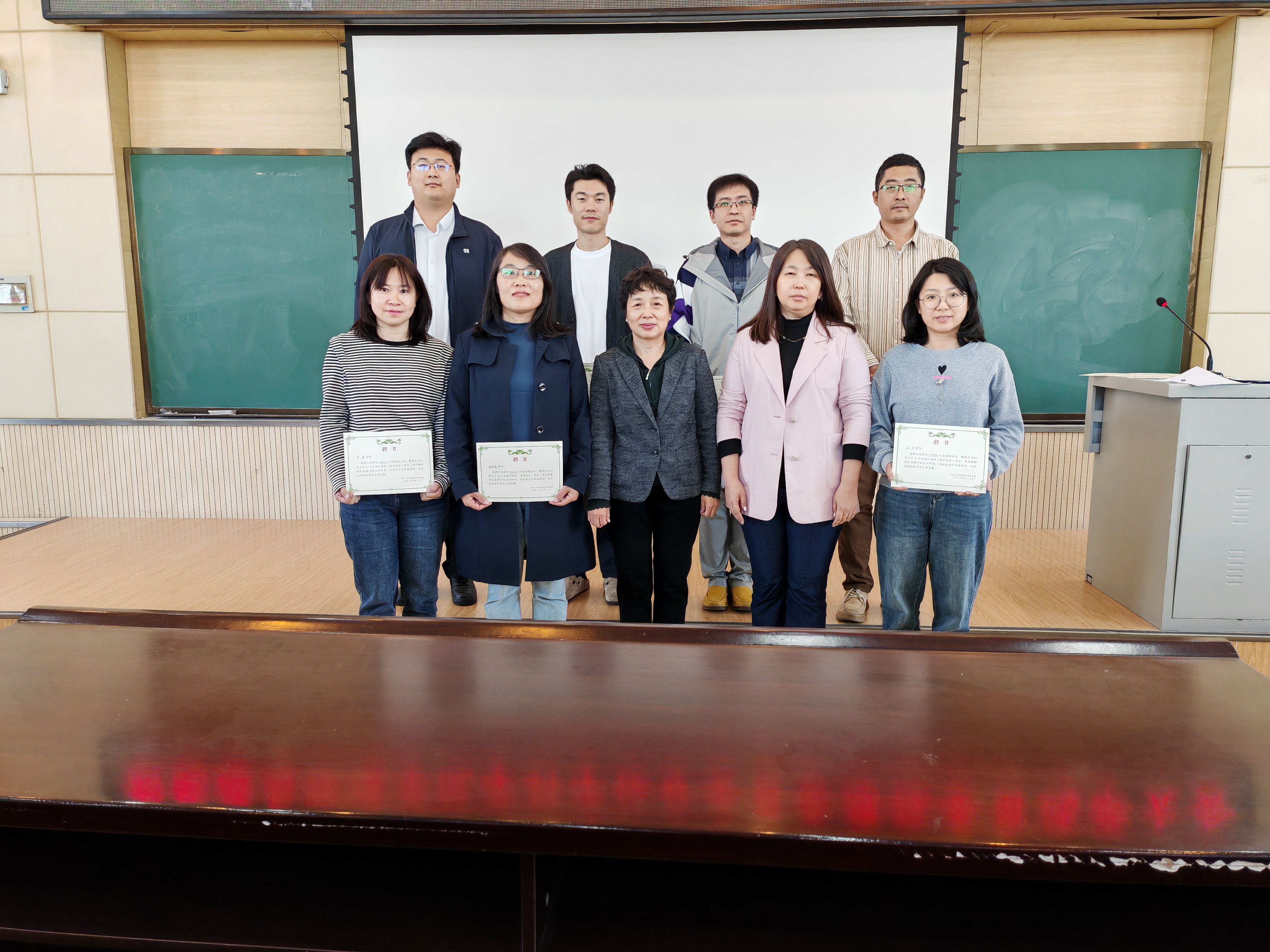 老师们也对班主任工作中的经验进行了交流。通过本次班主任聘任仪式,进一步强调了其在专业专业教育和人才培养中的重要意义。学院高度重视班主任队伍建设,多次在党政联席会议上讨论管理办法和班主任培训,相信在各位班主任老师的指导下,全体师生凝心聚力,为学院专业建设、学科发展和学生全面发展贡献智慧和力量。