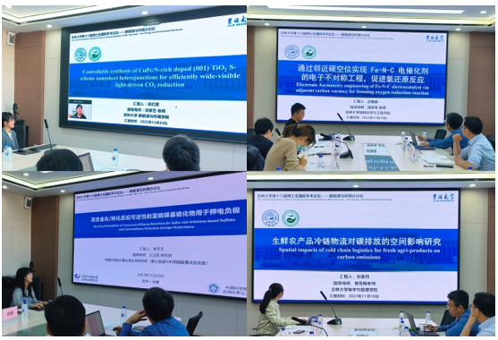 环境工程系副主任吕聪教授。本分会场探讨的学术方向涉及新能源电池、高级氧化技术、仿生多孔复合材料、纳米吸附、碳排放等多方面、多学科领域的内容,从实验研究、效果应用、发展趋势等方面进行了深入剖析。同时评委老师针对宣讲汇报中存在的问题提出了专业的指导意见及建议。精彩的学术报告和专业的点评激发了大家对科研的兴趣和热情,现场掌声阵阵。分论坛宣讲结束后,花修艺教授对参赛文章进行总结点评,对各位研究生的精彩汇报表示肯定,鼓励新一代年轻人勇敢追逐学术之路,并向关注出席本次论坛的师生表示感谢。曲蛟教授表示,听完同学们的汇报,他倍感欣慰,无论从ppt制作美化、研究内容等,还是汇报形式都别出心裁,对近年来研究生培养工作表示高度的肯定。张大奕教授做总结发言,他一直非常重视本系研究生培养,尤其对博士生的培养,对汇报的内容表示高度肯定,希望在未来的几年各位博士生能在环境领域有更深的造诣。