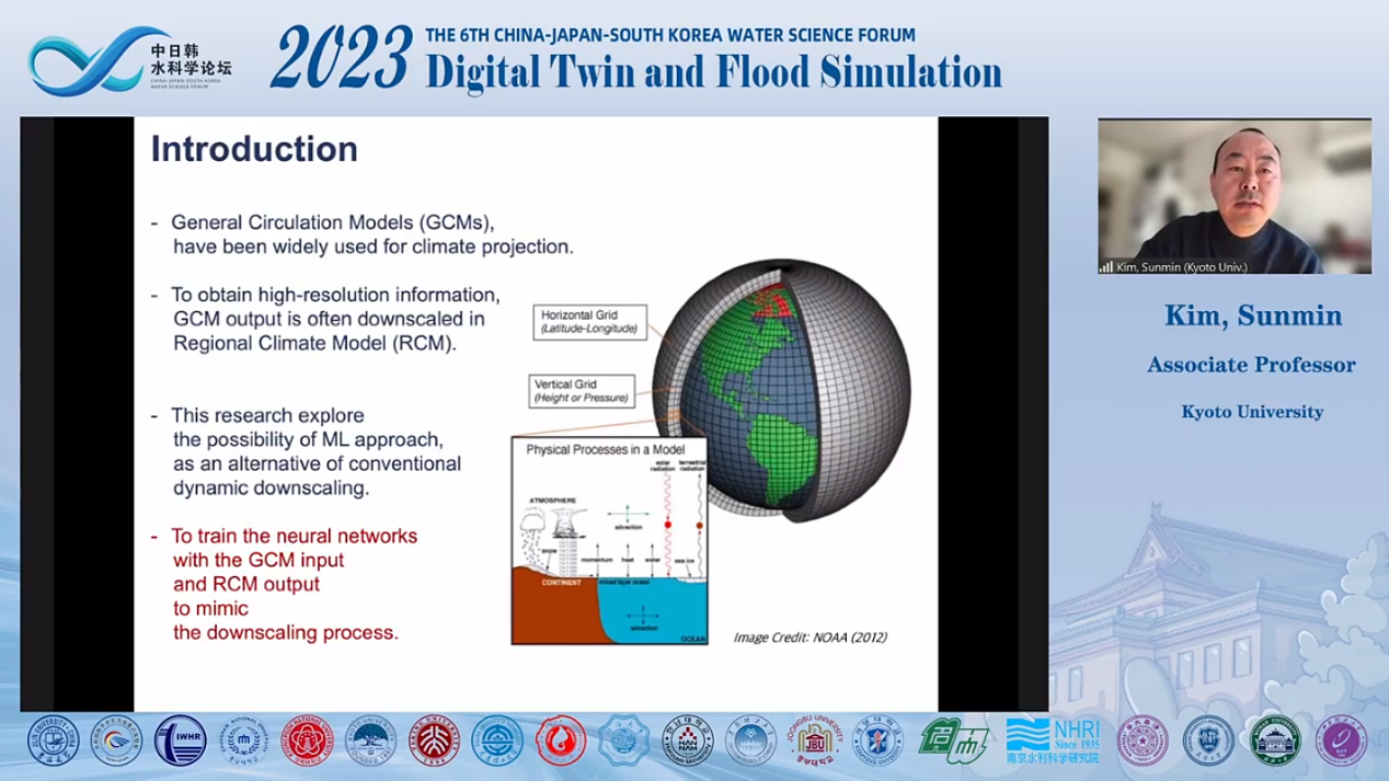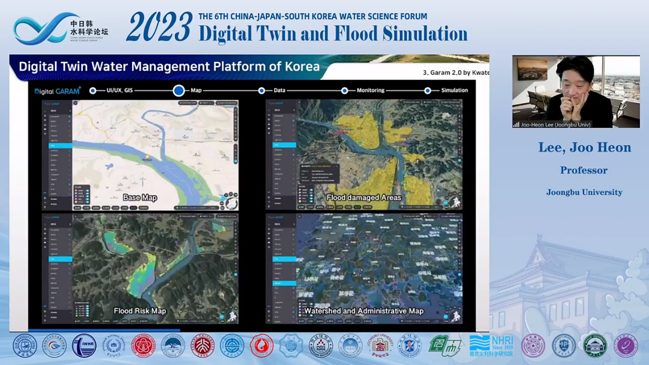 和水利部数字孪生流域重点实验室联合主办,韩国忠南国立大学、韩国庆北国立大学、日本京都大学共同承办,聚焦“数字孪生与洪涝模拟”主题,以线下特邀报告专场和线上全球直播形式召开。参会人员包括中日韩三国高校、科研院所和企事业单位100余位代表(线上、线下),在探花av