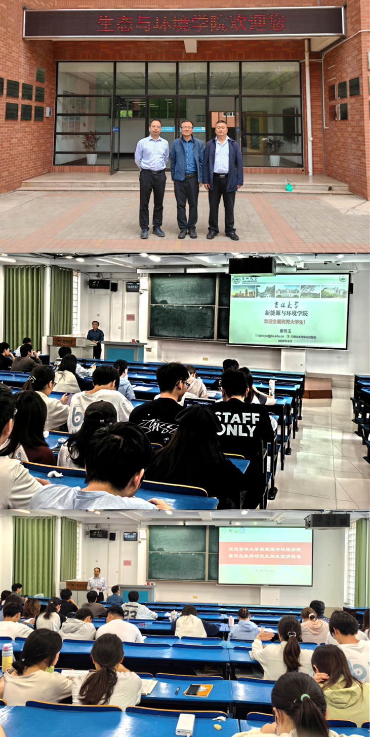 副院长秦传玉教授赴郑州大学开展研究生招生宣讲活动。郑州大学生态与环境学院徐洪斌副院长、平建华教授与部分在校本科生参加了宣讲活动。