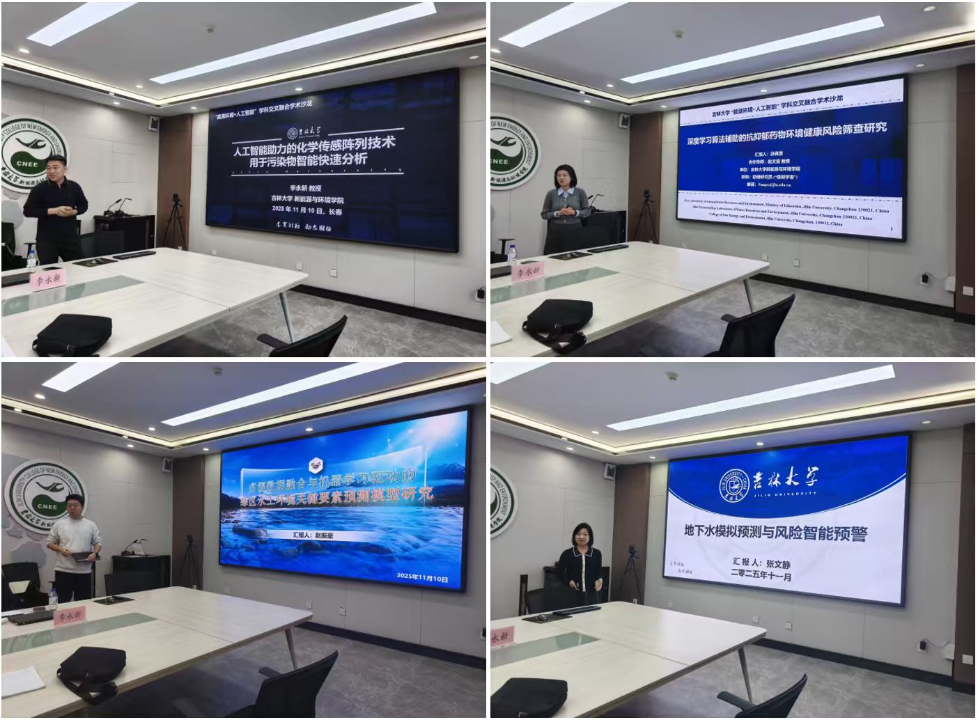 的教师团队则展示了理论计算与机器学习在能源环境领域的交叉创新、基于人工智能的化学传感阵列技术在污染物快速智能分析中的应用、深度学习辅助的抗抑郁药物环境稳定性筛查研究,以及地下水模拟预测与智能风险预警系统等前沿方向。现场师生互动积极,学术氛围浓厚。