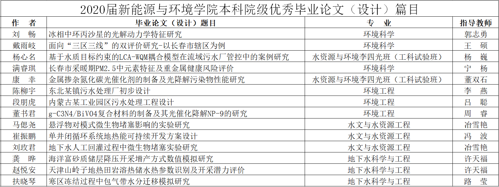2020届探花av 本科院级优秀毕业论文(设计)篇目