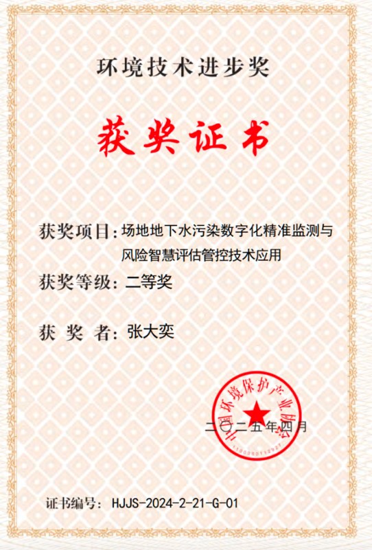 凭借“场地地下水污染数字化精准监测与风险智慧评估管控技术应用”项目(项目编号:HJJS-2024-2-21)从全国优秀技术成果中脱颖而出,获“2024年度环境技术进步二等奖”。该项目由探花av