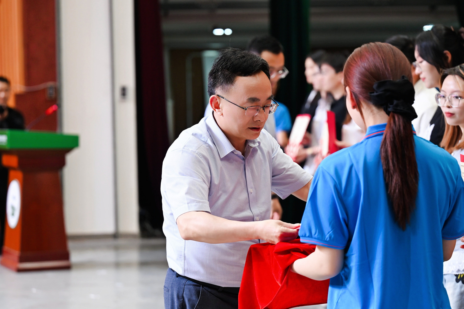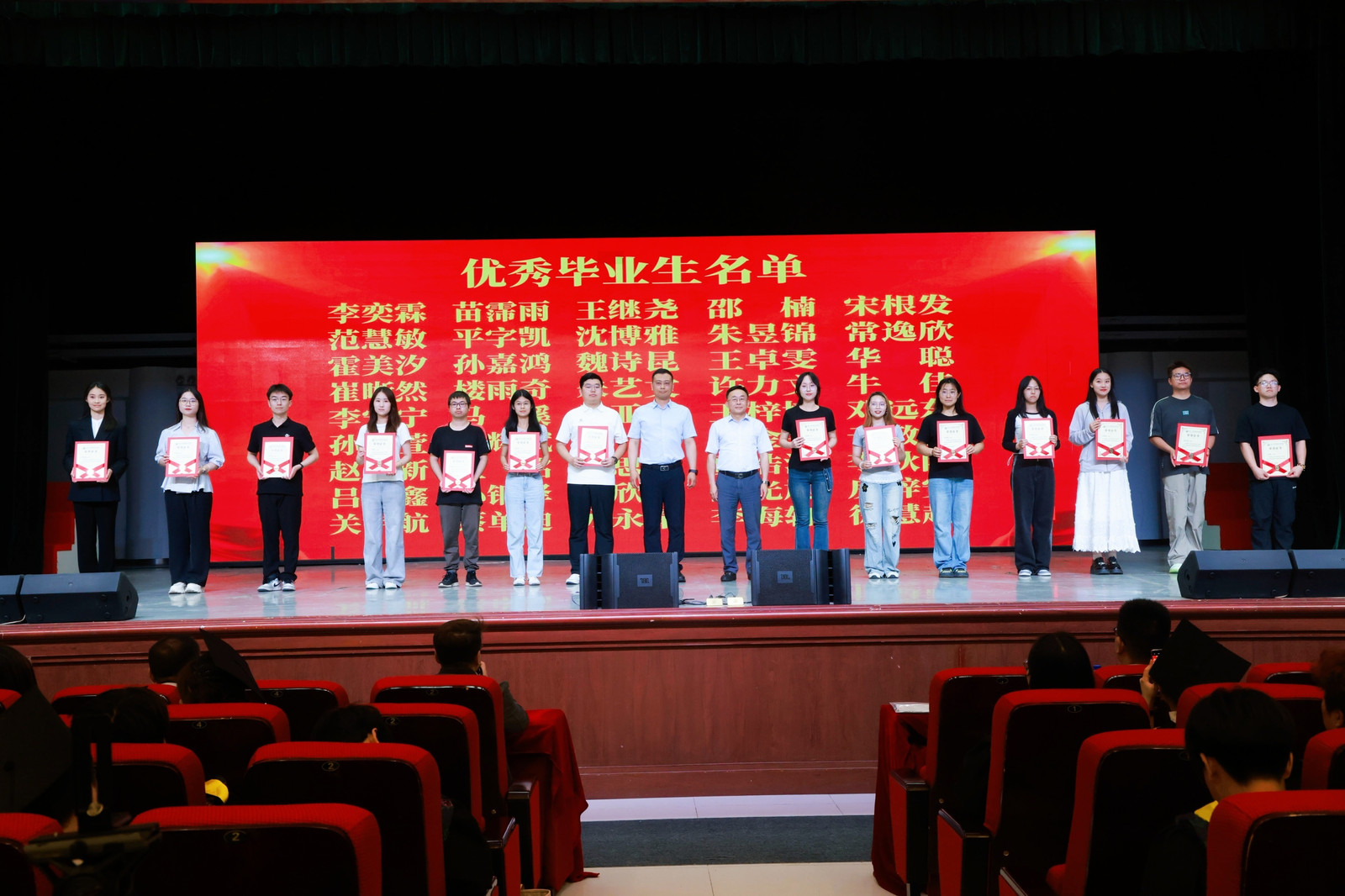 2025届优秀毕业生的决定》,院长董双石、党委书记汪祥松为45名优秀毕业生代表颁奖。