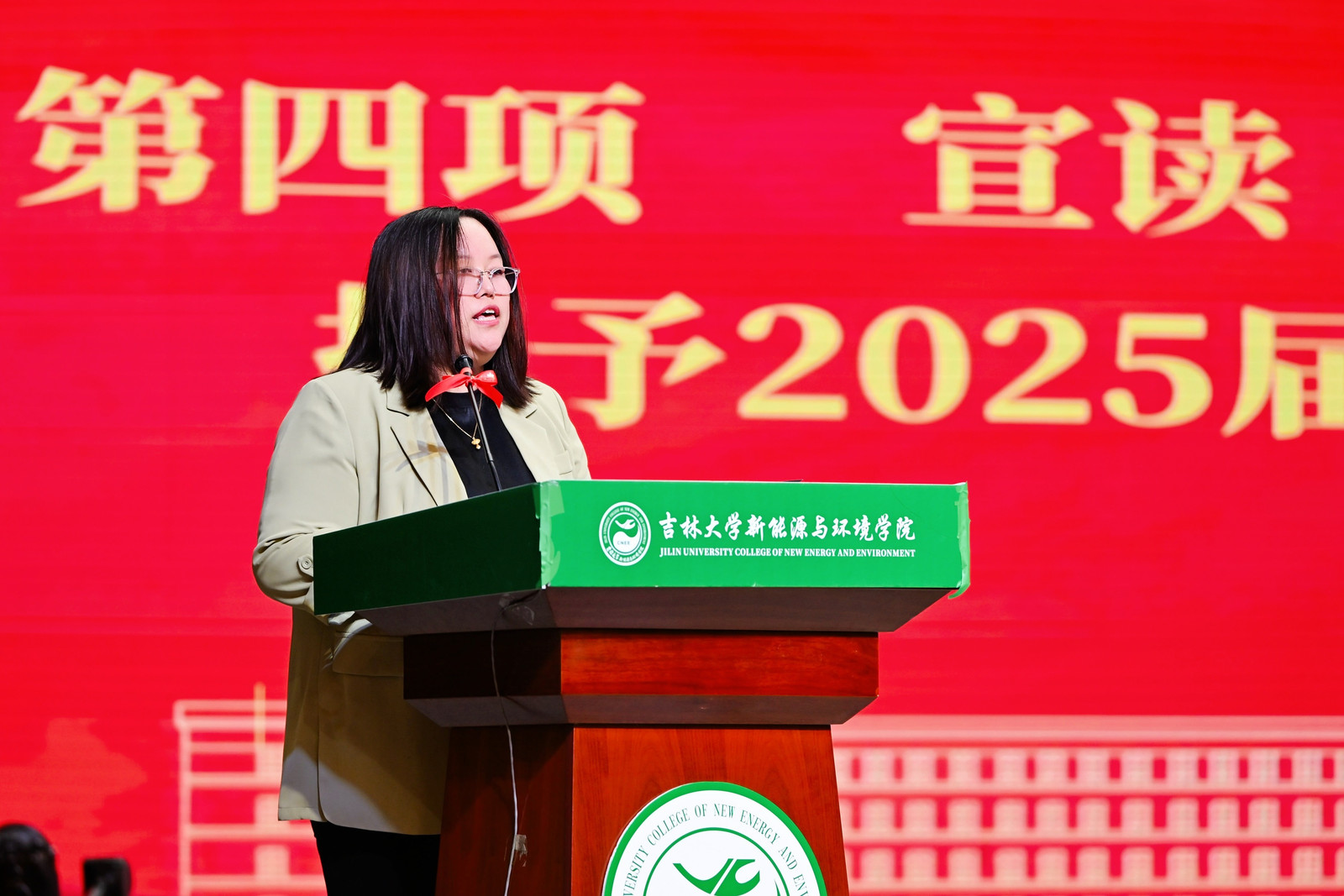 副院长秦传玉宣读《关于授予2025届毕业生博士、硕士学位的决定》,副院长辛欣宣读《关于授予2025届毕业生学士学位的决定》,本届学院共有22名博士研究生、110名硕士研究生和162名本科生顺利毕业。