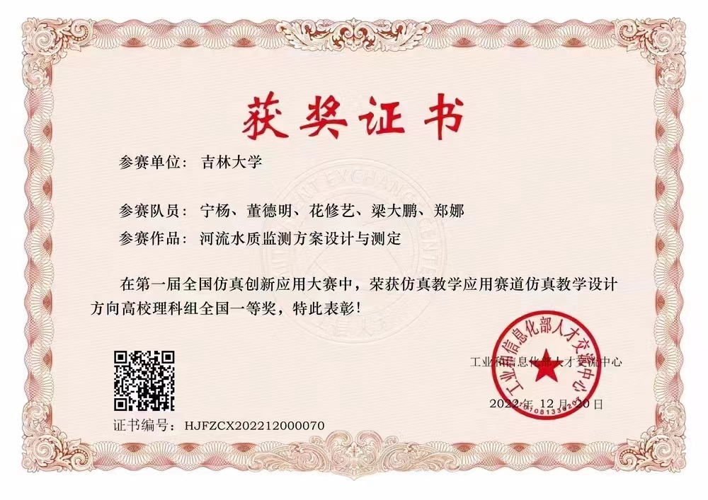优秀基层教学组织;“河流水质监测方案设计与测定”获全国仿真创新应用大赛一等奖“包气带与饱和带渗流运动模拟”获全国仿真创新应用大赛吉林省赛二等奖;获批学校规划建设教材立项4部,出版规划教材2部;获批吉林省高教科研课题1项,探花av