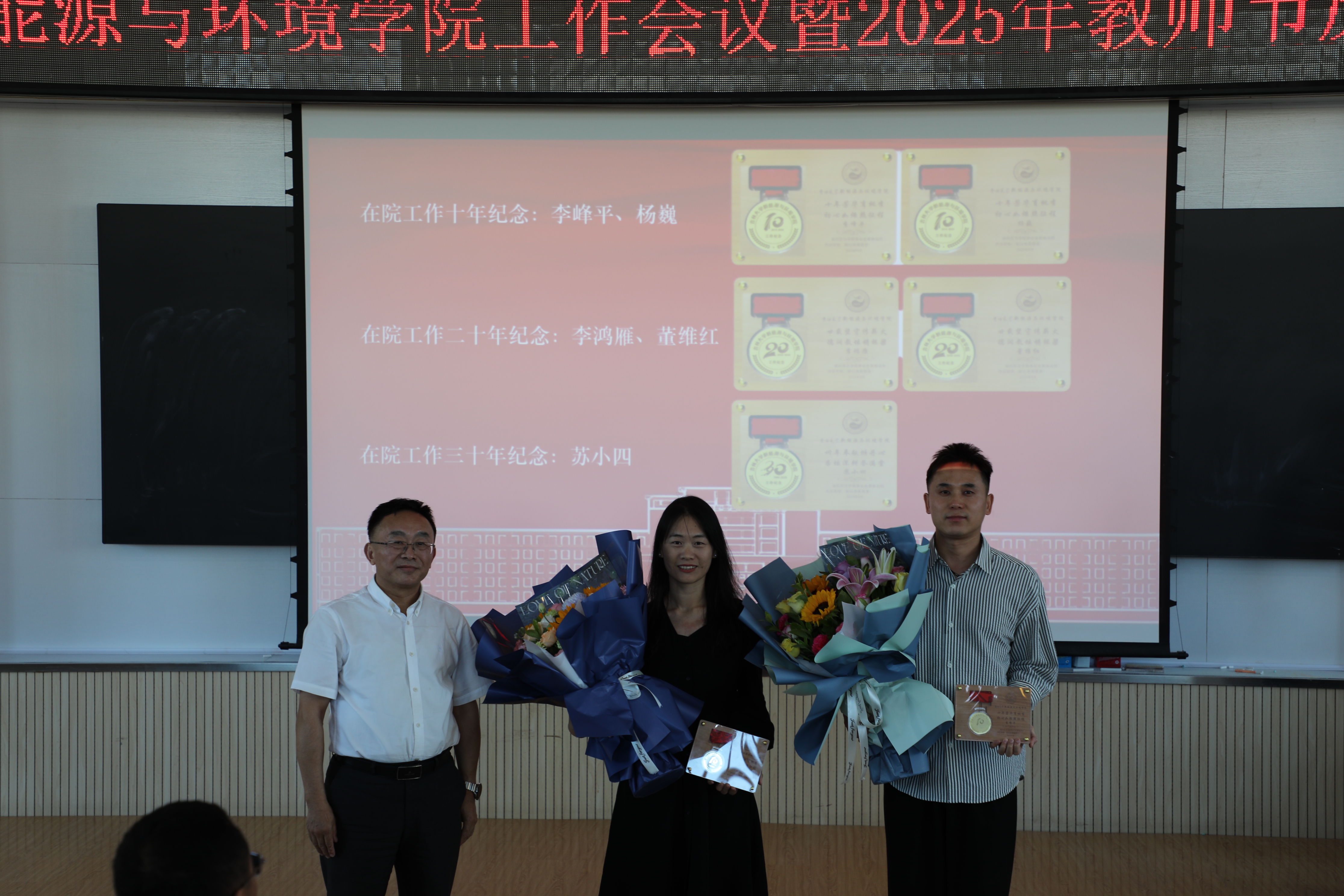 汪祥松书记为在学院工作十年、二十年、三十年的教职工颁发了“十年芳华育桃李 初心如炬照征程”“廿载坚守传薪火 德润教坛铸造栋梁”“州年奉献倾丹心杏坛深耕誉满堂”的纪念工作牌,并向他们为学院事业做出的杰出贡献,致以崇高敬意!