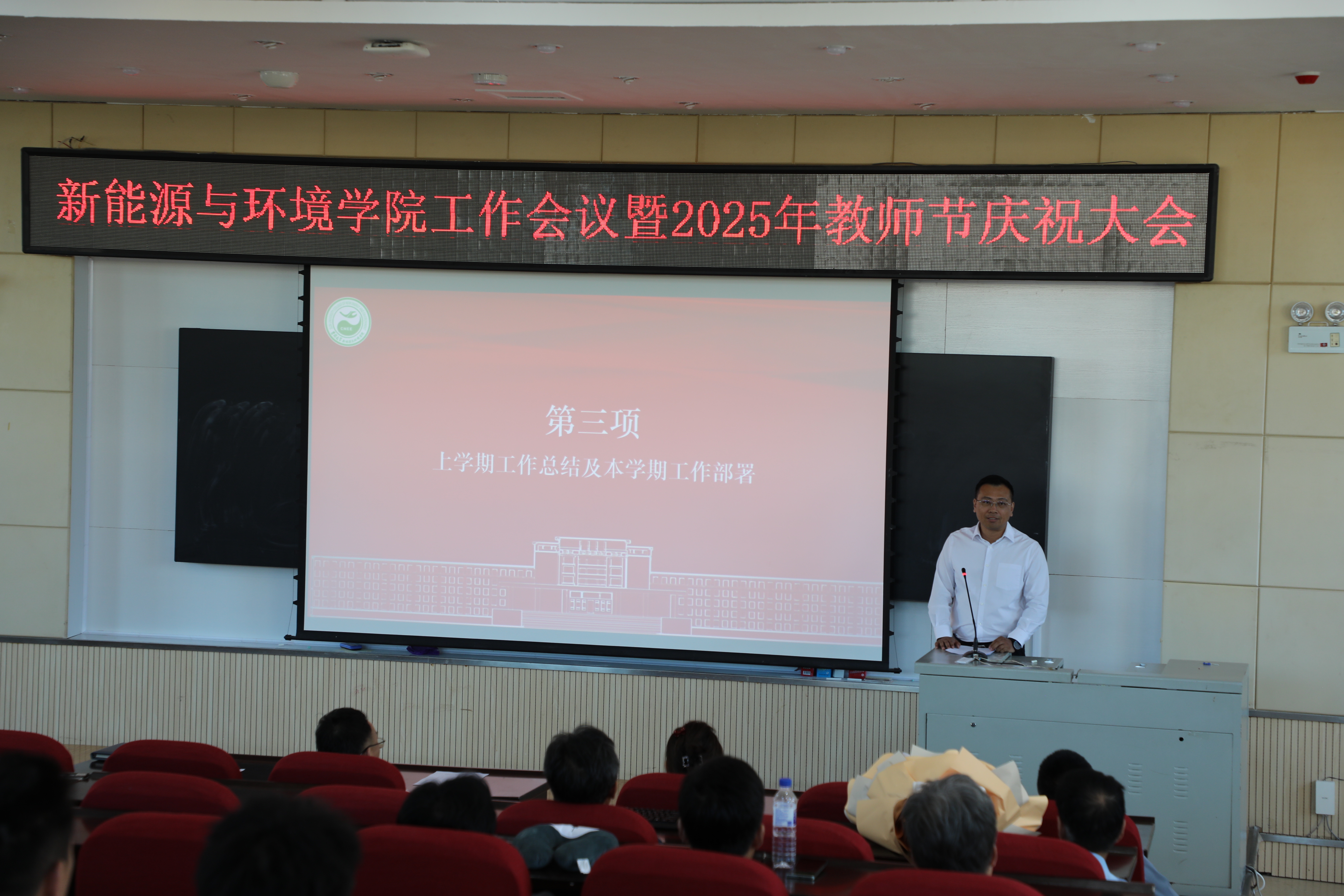 接下来,院长董双石对学院上学期工作进行总结,并对本学期工作进行部署,他强调,成绩属于过去,奋斗才能成就未来,希望全体教职工保持昂扬的斗志,姿态培育高素质新能源与环境人才,共同书写学院教育事业高质量发展的新篇章!