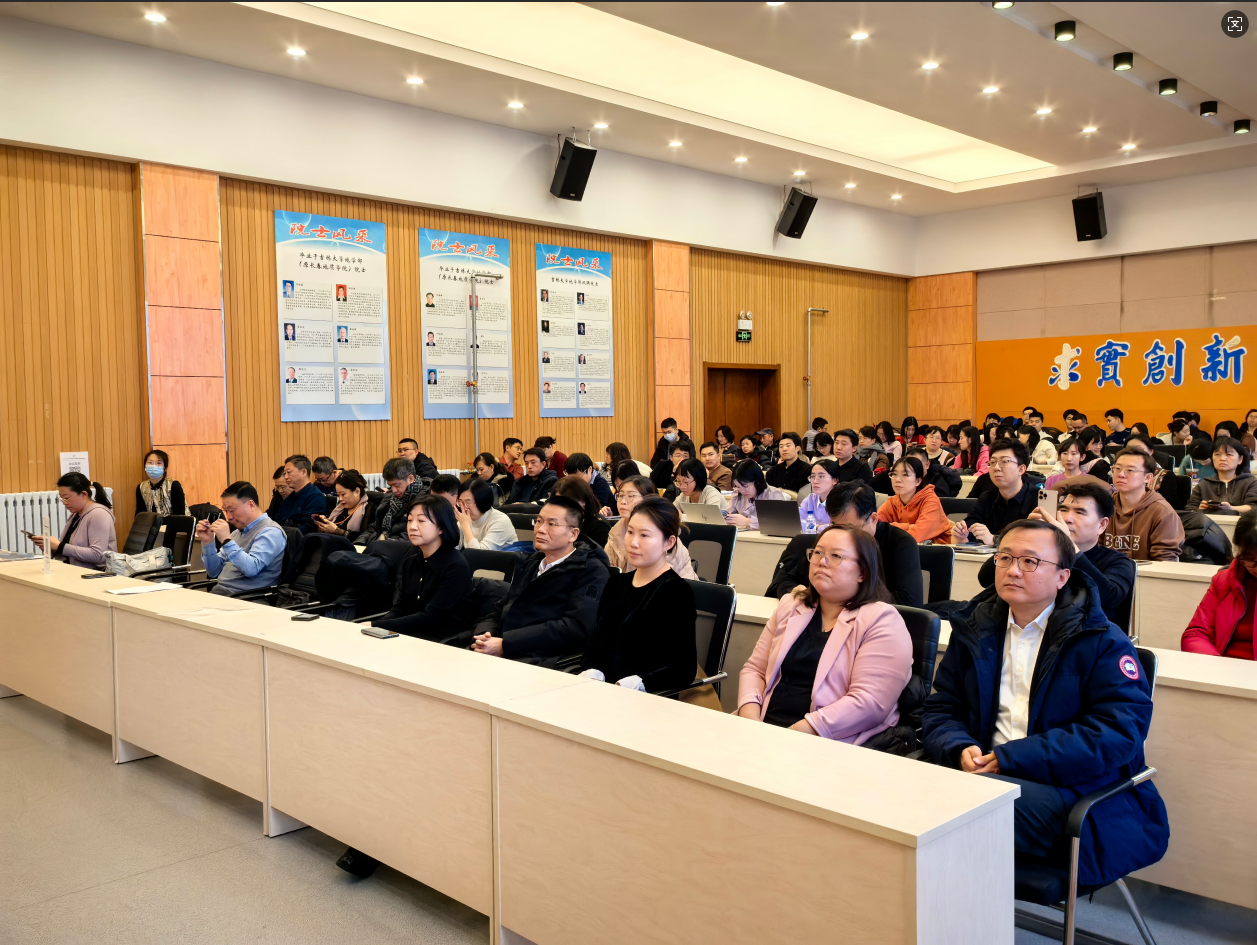 在朝阳校区李四光报告厅召开专题学习会,全院教职工参会。会议由学院党委书记汪祥松主讲。