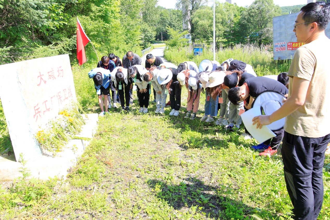 7月18日下午,学院环境科学系2019级本科野外实习团队利用暑期教学实践的机会,在长白山前川林场的大碱场兵工厂保卫战纪念碑前开展红色教育活动。学院环境科学系教工支部书记房春生、纪检委员姜百川,党员王硕、张屏、王菊,团委副书记安泰吉以及学生党员、学生积极分子和全体学生干部百余人参加了活动。师生们学习了大碱场兵工厂保卫战的历史,经受了东北抗日联军不怕牺牲精神的洗礼。房春生带领全体党员在大碱场兵工厂保卫战纪念碑前重温入党誓词并向英烈敬献花束。