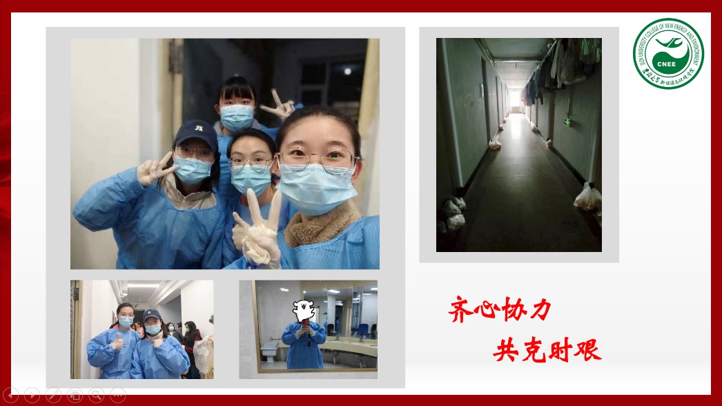 活动伊始,党支部组织委员兼宣传委员牛梦圆同学带领大家一起学习了《致全省各级党组织和广大共产党员的一封信》以及《致全校各级党组织和广大党员的倡议书》。随后,四位党员志愿者代表分别分享了自己的战疫故事。孟益坎同学向大家展示了几组图片,讲述了自己从看到老师同学们积极参与疫情防控到自己和室友们一起参与防控的故事,分享了自己在清晨为大家发放完早餐后获得的自豪和光荣。她用“聚是一团火,散是满天星”形容一直奋战在校园疫情防控第一线的志愿者。一直驻校工作的钟宇博老师也分享了他这段时间的工作感受,他最后说“我们终会在春暖花开的校园里,迎接探花av